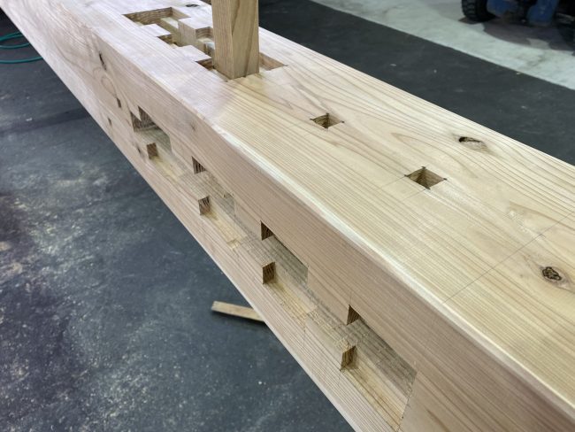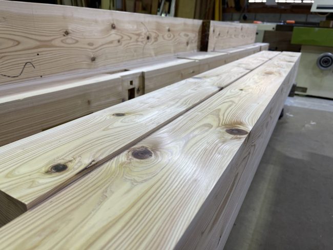 腕木の角面取り 一般By goto2022年1月27日面取り鉋で材料の角を落とします。(大工用語では糸面と言います) 角を落とすことで、材料の傷がつきにくくなります。 下の材木の写真は加工前で、角か立ったままです。