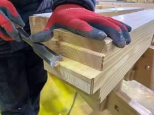一般 「臍(ほぞ)」と同語源。 古くは「ほそ」》木材などを接合する際、一方の端部に作る突起。 これを他方に作った枘穴(ほぞあな)に差し込んで合わせる。 500mmの梁構造材を組み立てる時、斜めからスムー Read More » 2022年1月27日